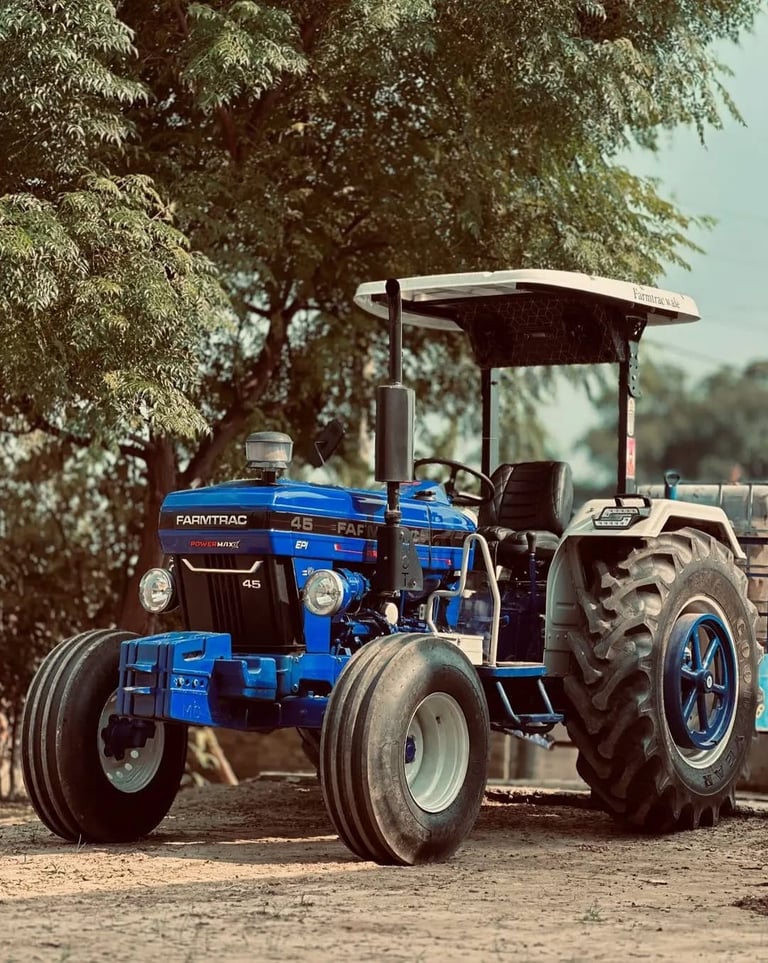 “The Farmtrac 45 is a reliable 45 HP tractor known for durability, fuel efficiency, and smooth performance. It features a powerful 3-cylinder engine, robust hydraulics, and comfortable operation. Ideal for farming and hauling, it offers great mileage and easy maintenance.''